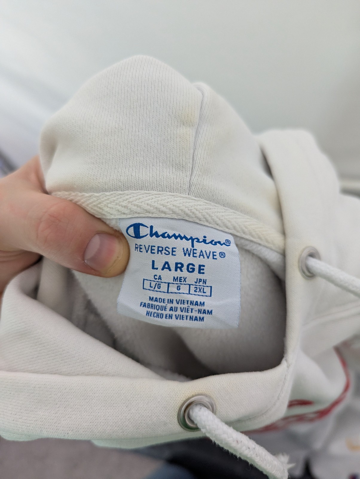 Champion Big Logo Reverse Weave Hoodie – White – Men’s Large