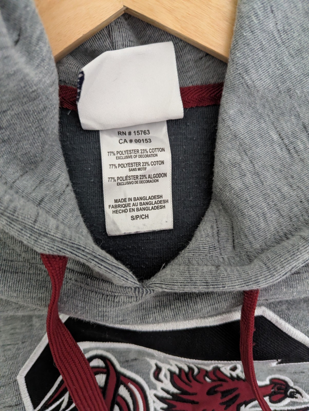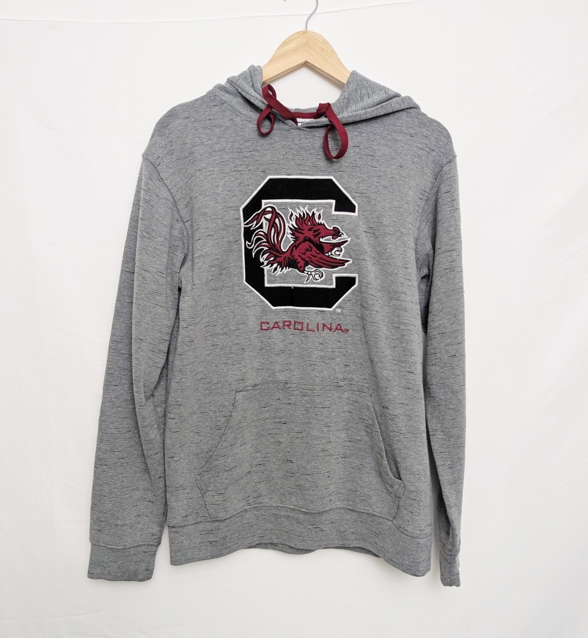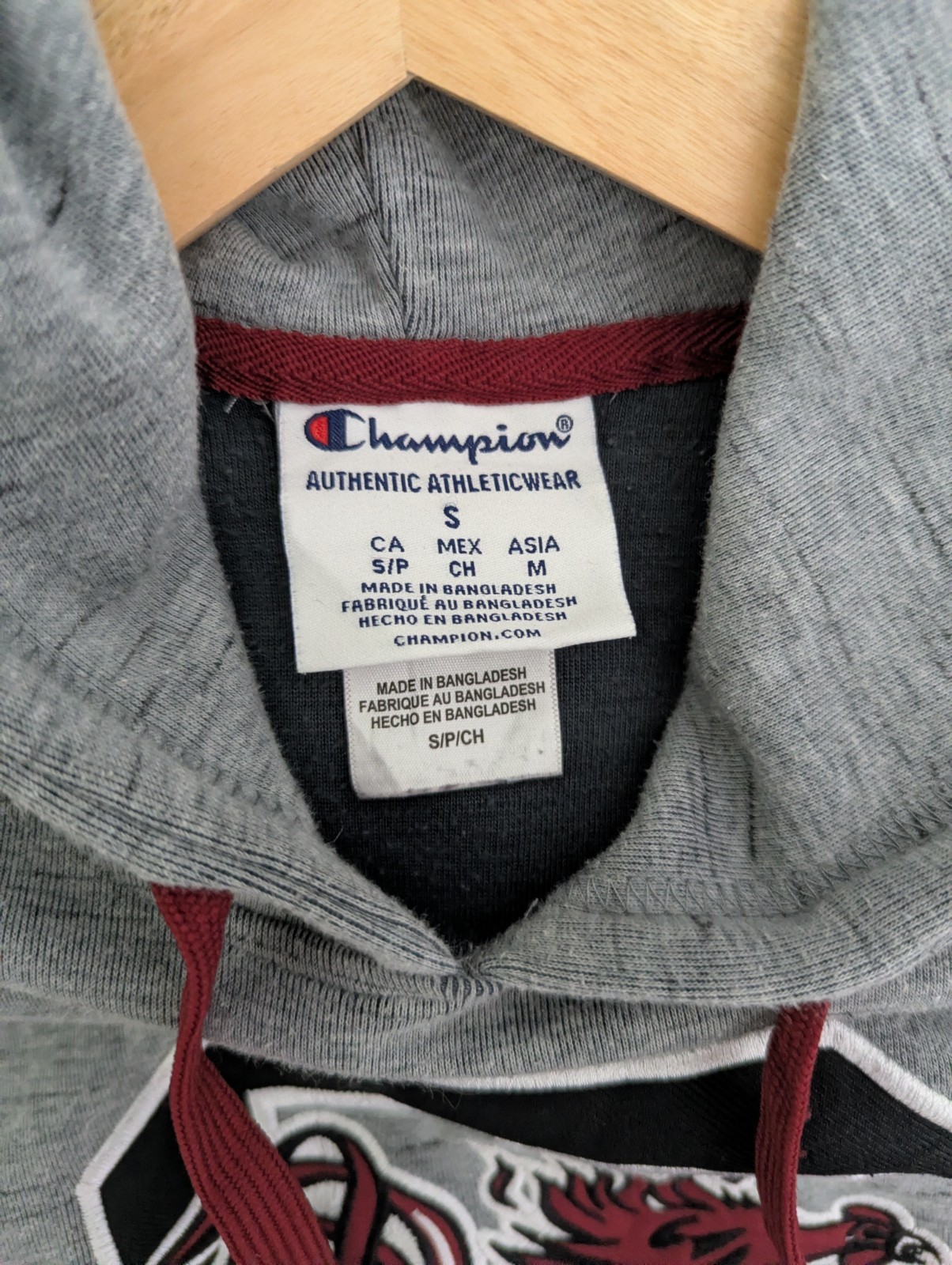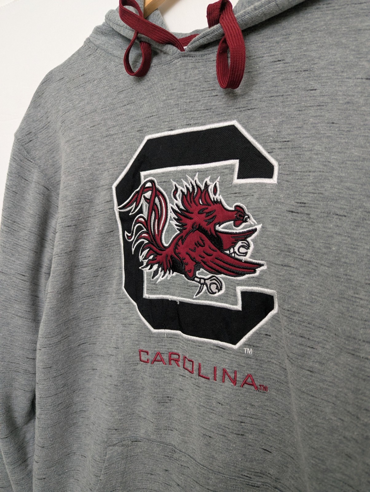 Official University of South Carolina Gamecocks hoodie by Champion. Features large embroidered front logo with “C” and Gamecock mascot.