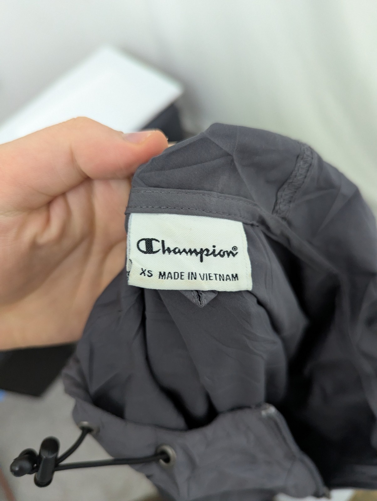 Light grey Champion windbreaker featuring CSUN printed chest logo.