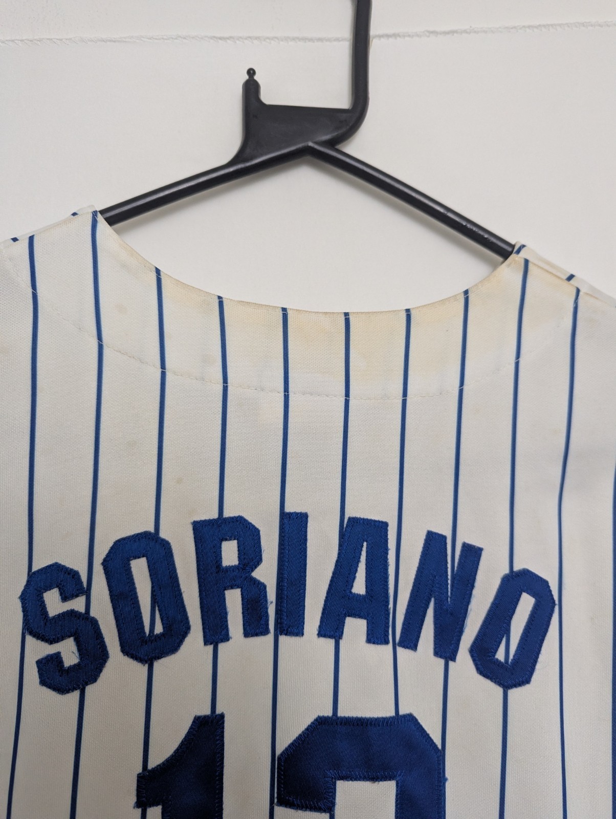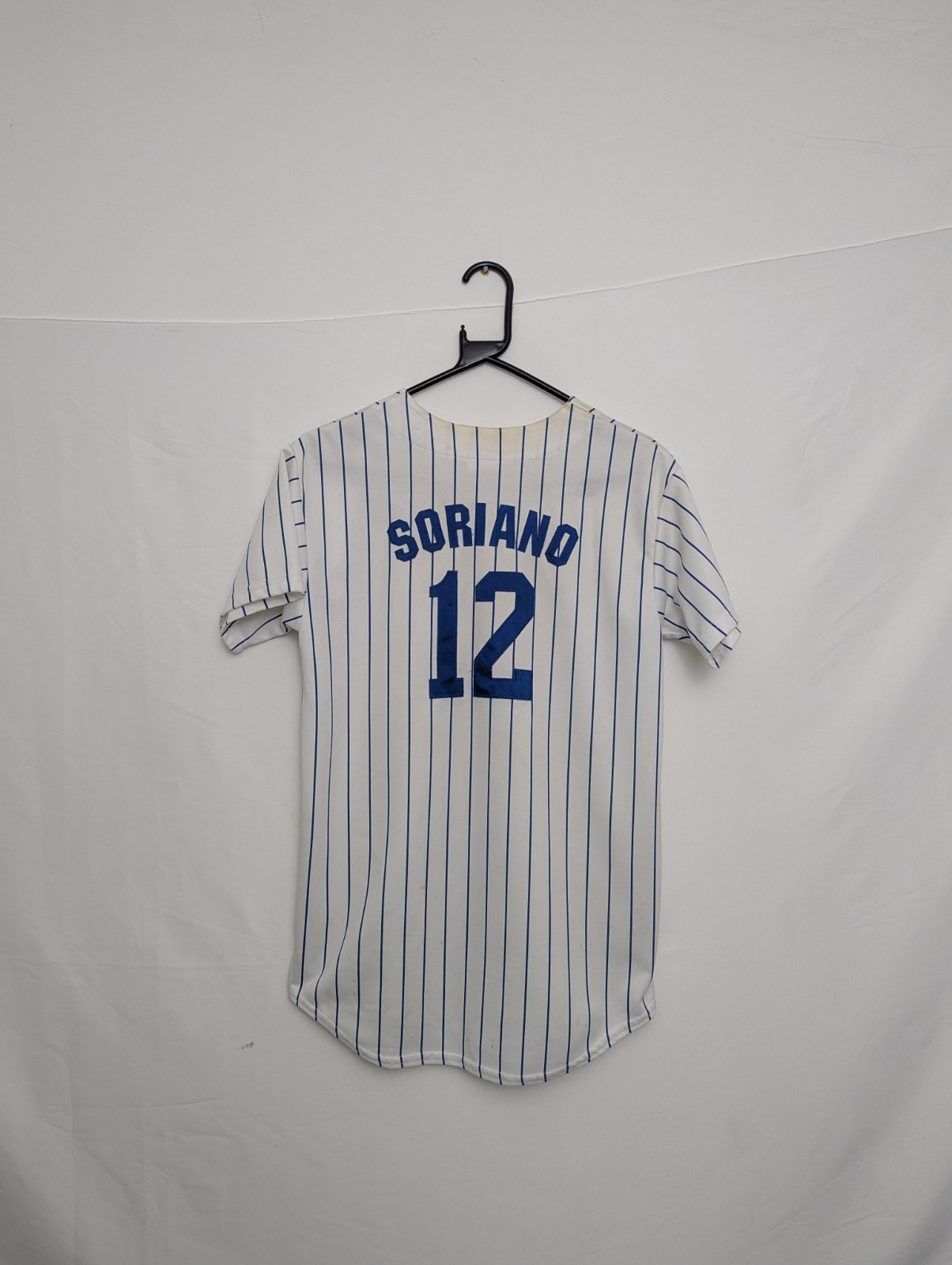 Genuine Majestic Chicago Cubs jersey from the late 2000s featuring Alfonso Soriano’s #12. Youth XL fits close to a Men’s Small in chest and length.