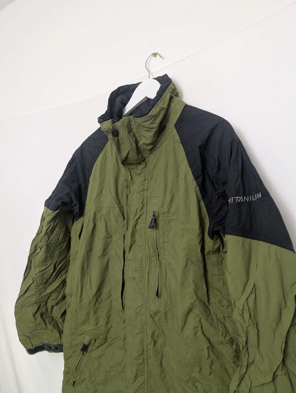 Men’s Columbia Titanium insulated jacket in olive green with black panels. Part of Columbia’s premium Titanium range, designed for colder conditions with lightweight insulation and a durable outer shell. Features full zip front, high collar and multiple zip pockets.