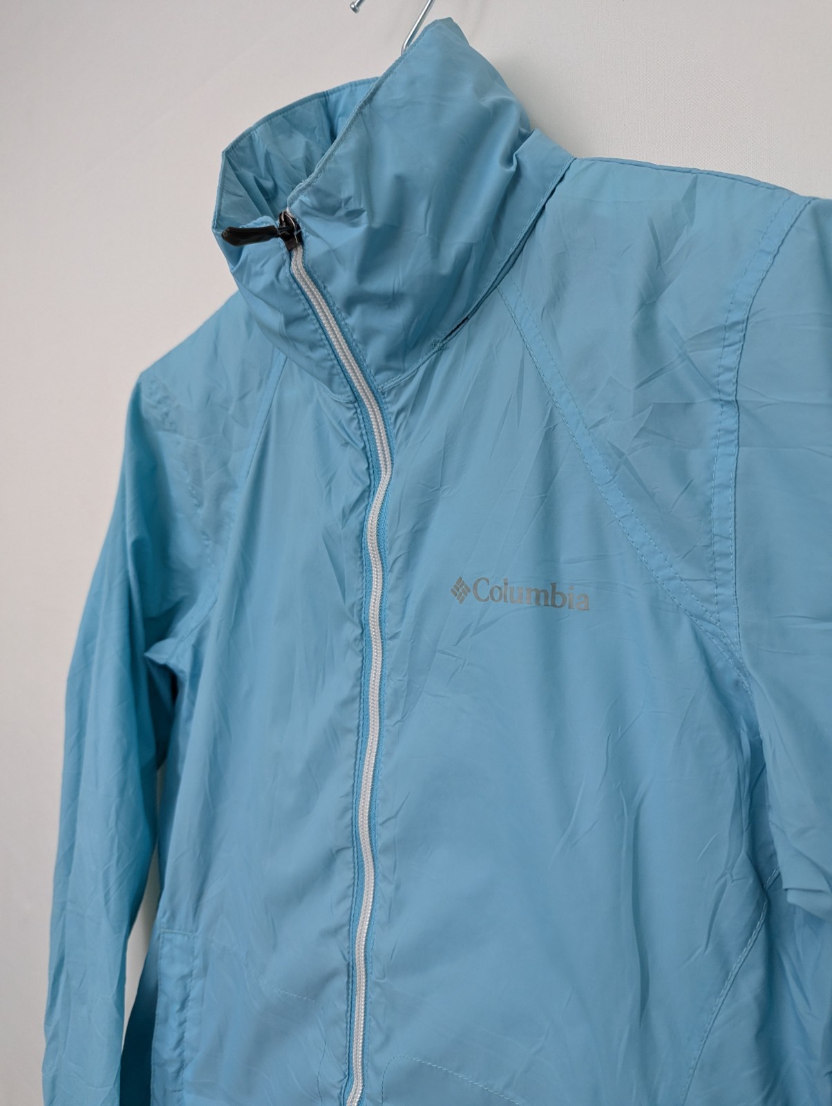 Women’s Columbia lightweight windbreaker jacket in a light blue colourway. A versatile outdoor jacket suitable for everyday wear, travel, walking, or light hiking.