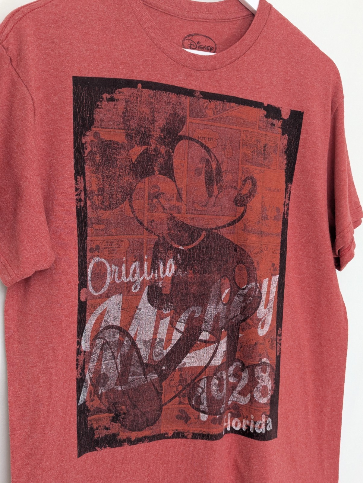 Disney Mickey Mouse graphic t-shirt in a red colourway featuring a distressed “Original Mickey 1928” print.
