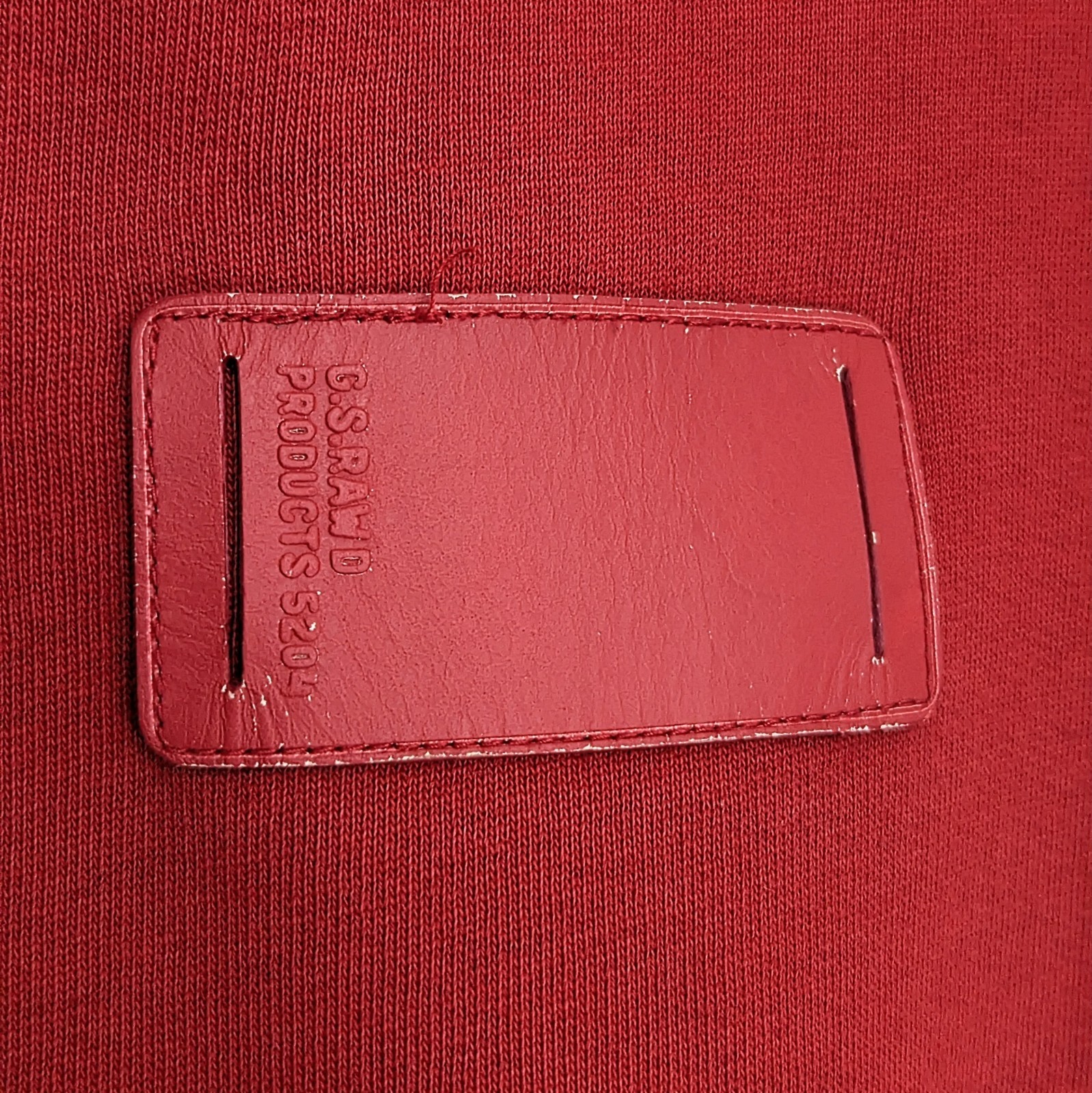 G-Star RAW hoodie in red featuring a large front logo graphic and leather patch detail on the back.