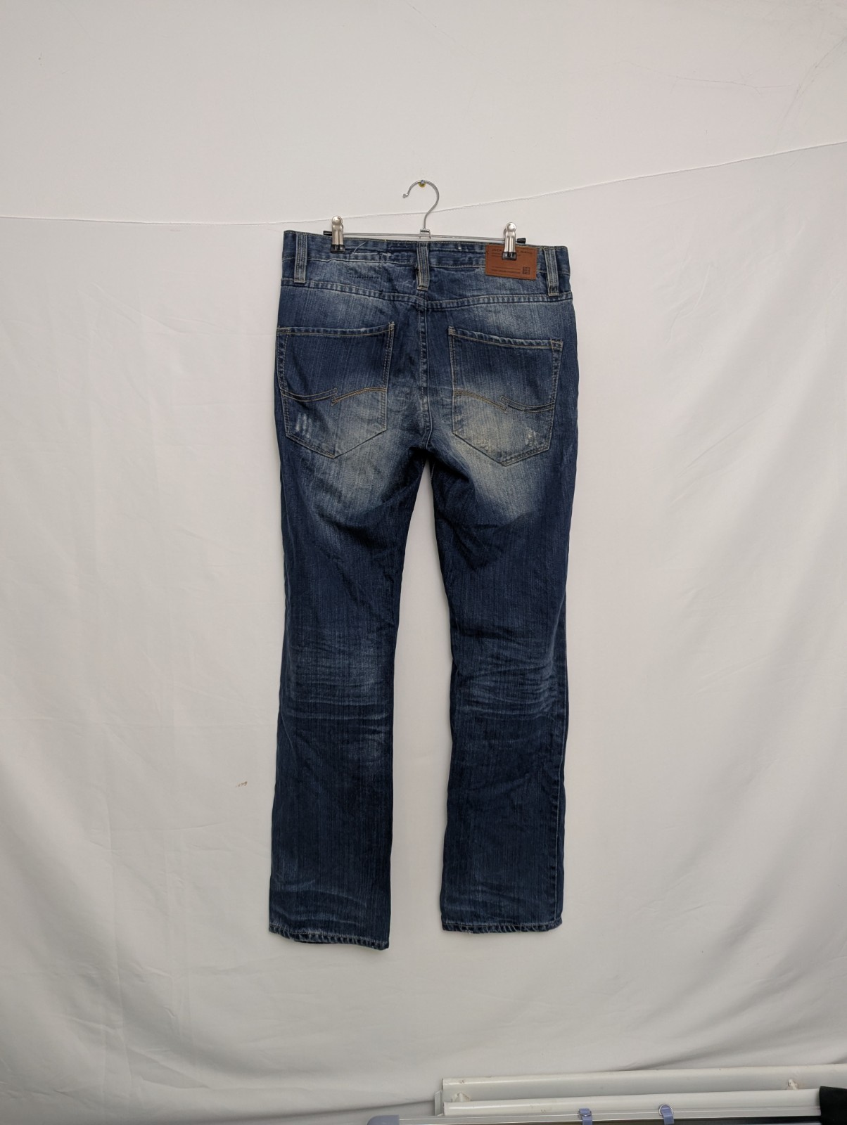 A classic pair from the Jack & Jones Vintage line featuring heavy whiskering, faded thighs, mild distressed areas and a button fly. Straight leg fit.