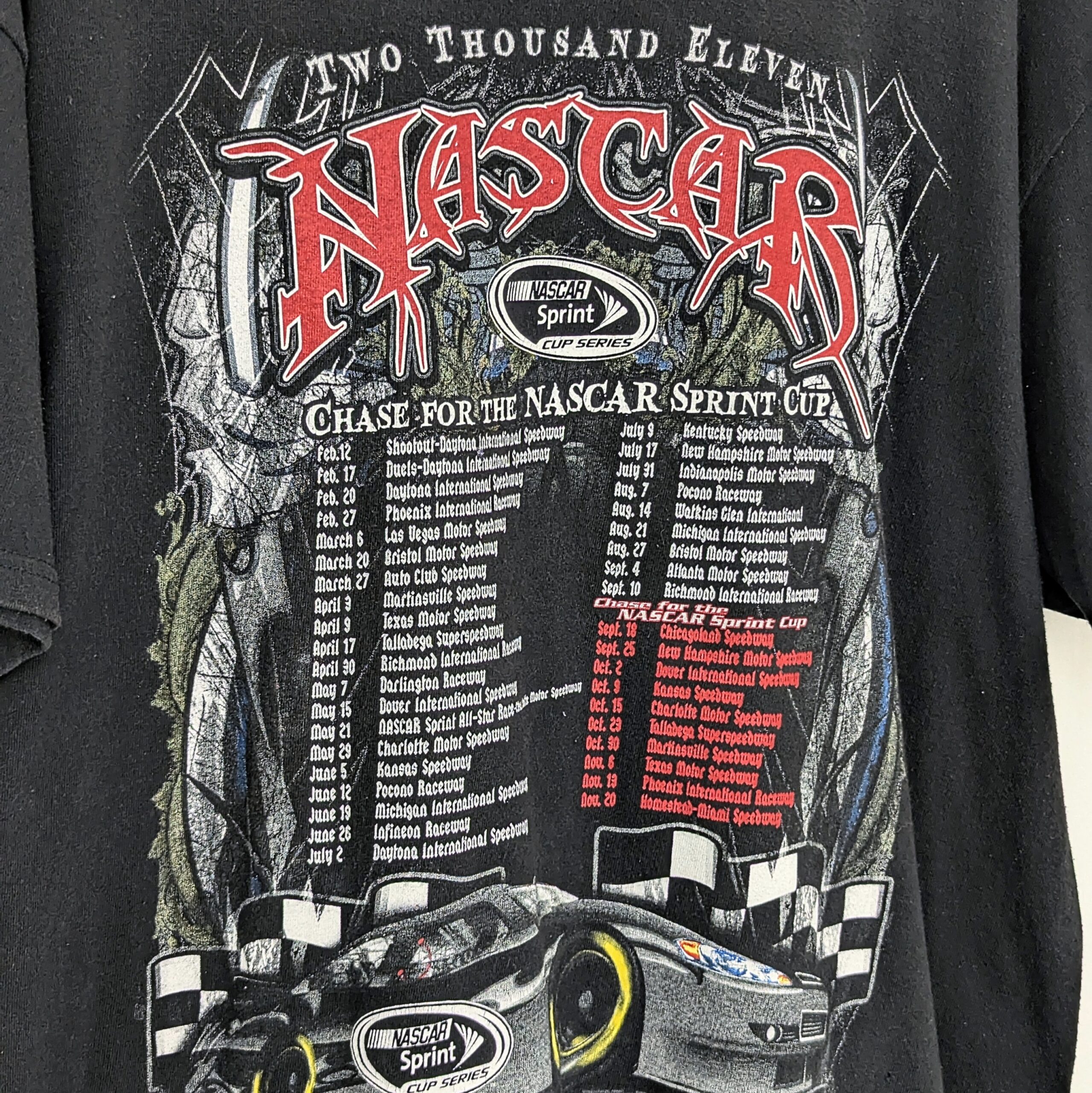Official NASCAR Sprint Cup Series graphic t-shirt from 2011 featuring a detailed race schedule print and bold motorsport design.