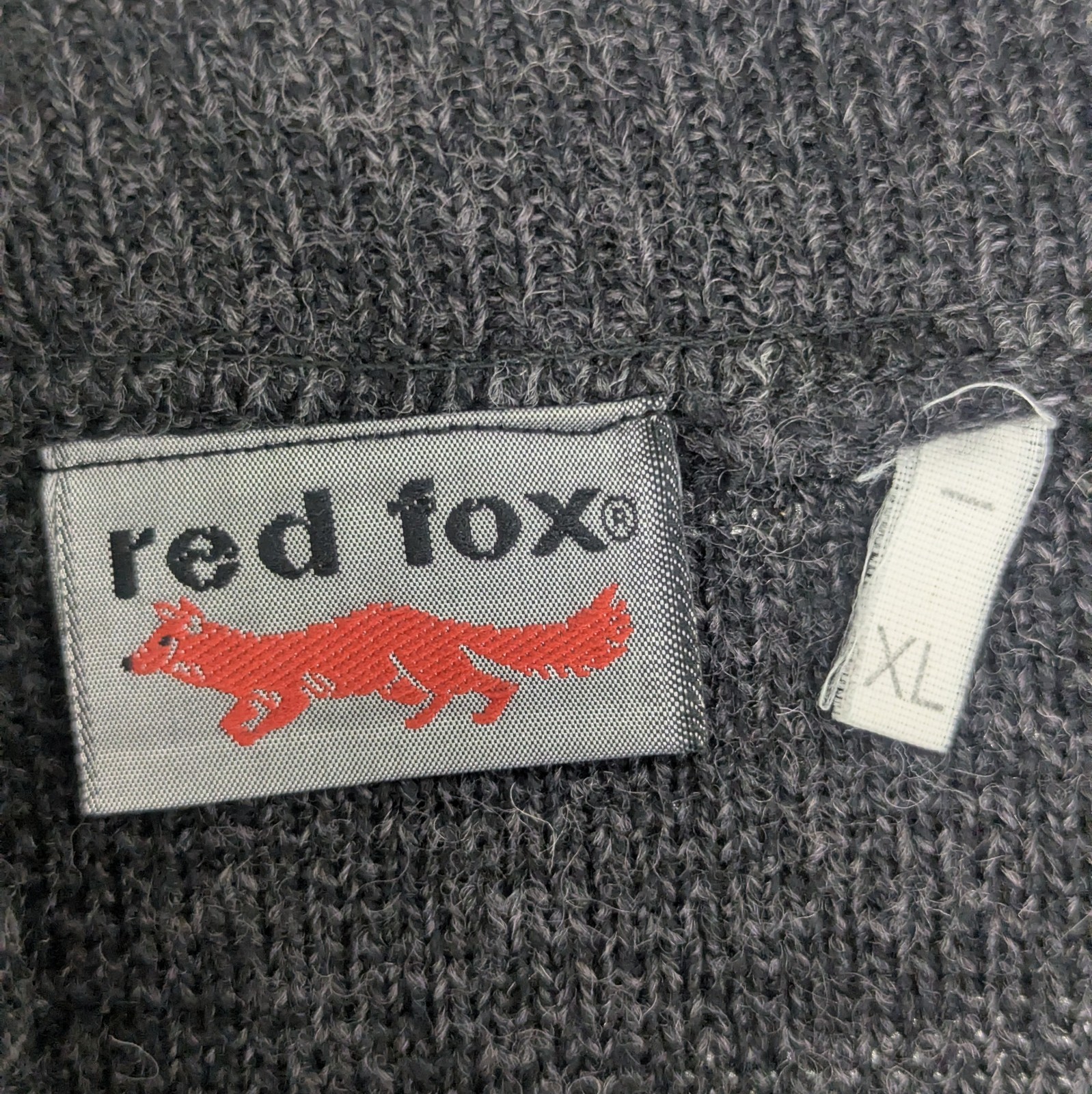 Red Fox Vintage Quarter Zip Knit Jumper – Grey Patterned – Size XL