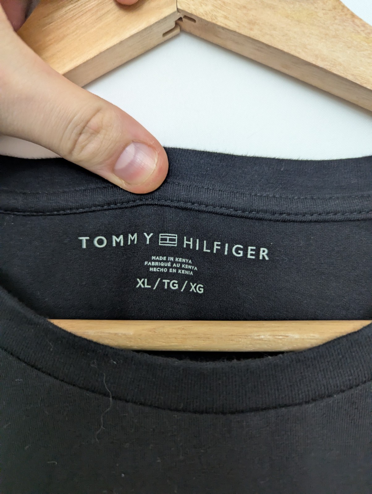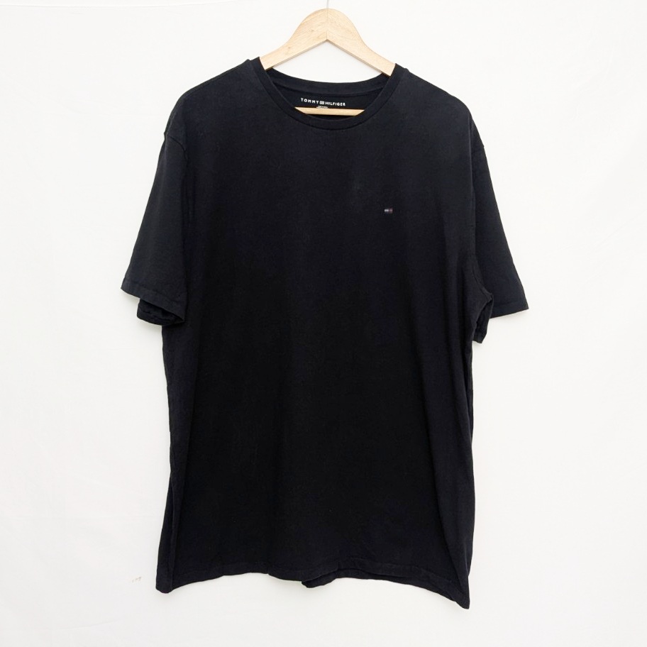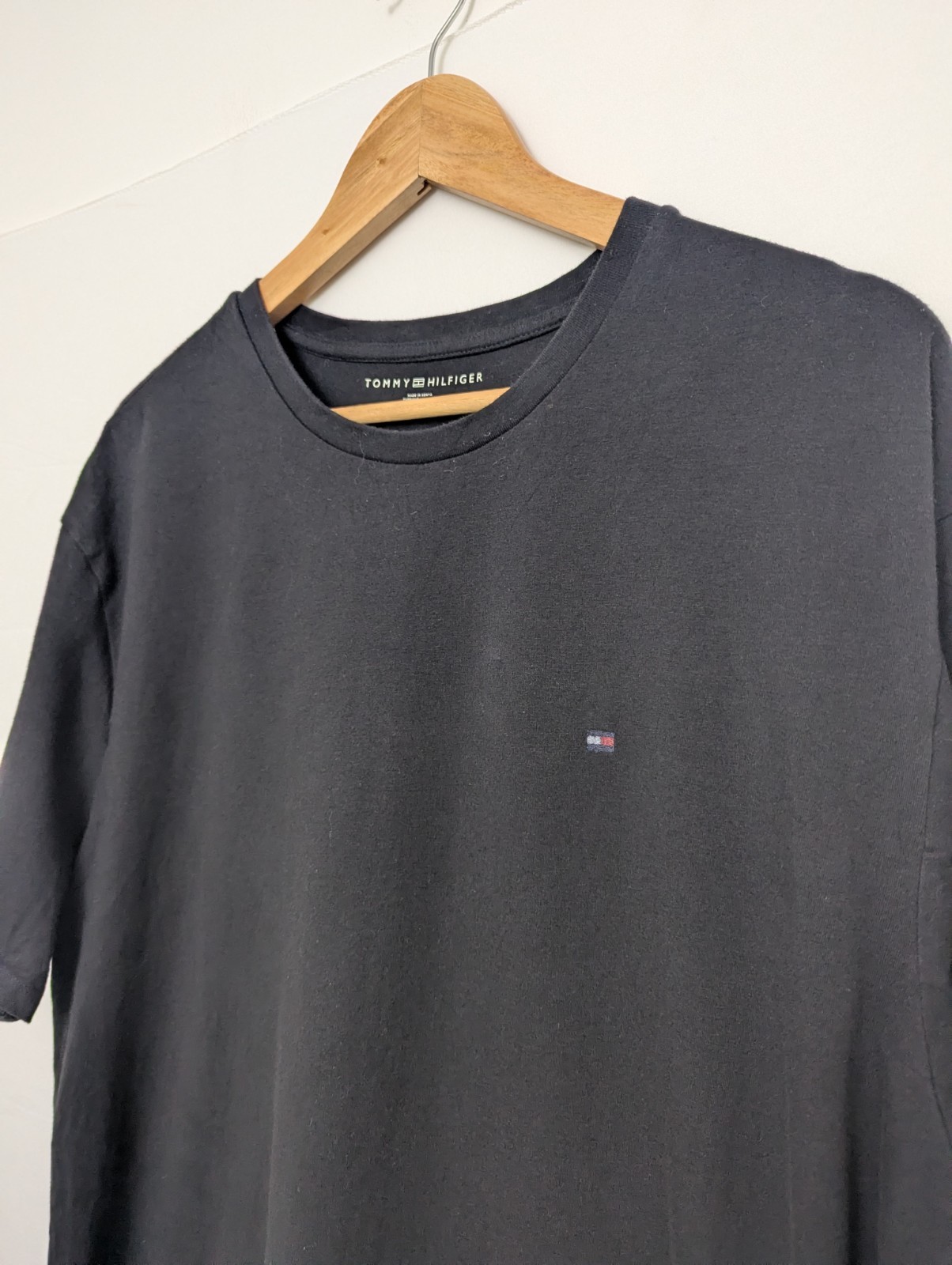 Men’s Tommy Hilfiger short sleeve t-shirt in black. Features a small embroidered Tommy Hilfiger flag logo on the chest with a classic crew neck and regular fit.