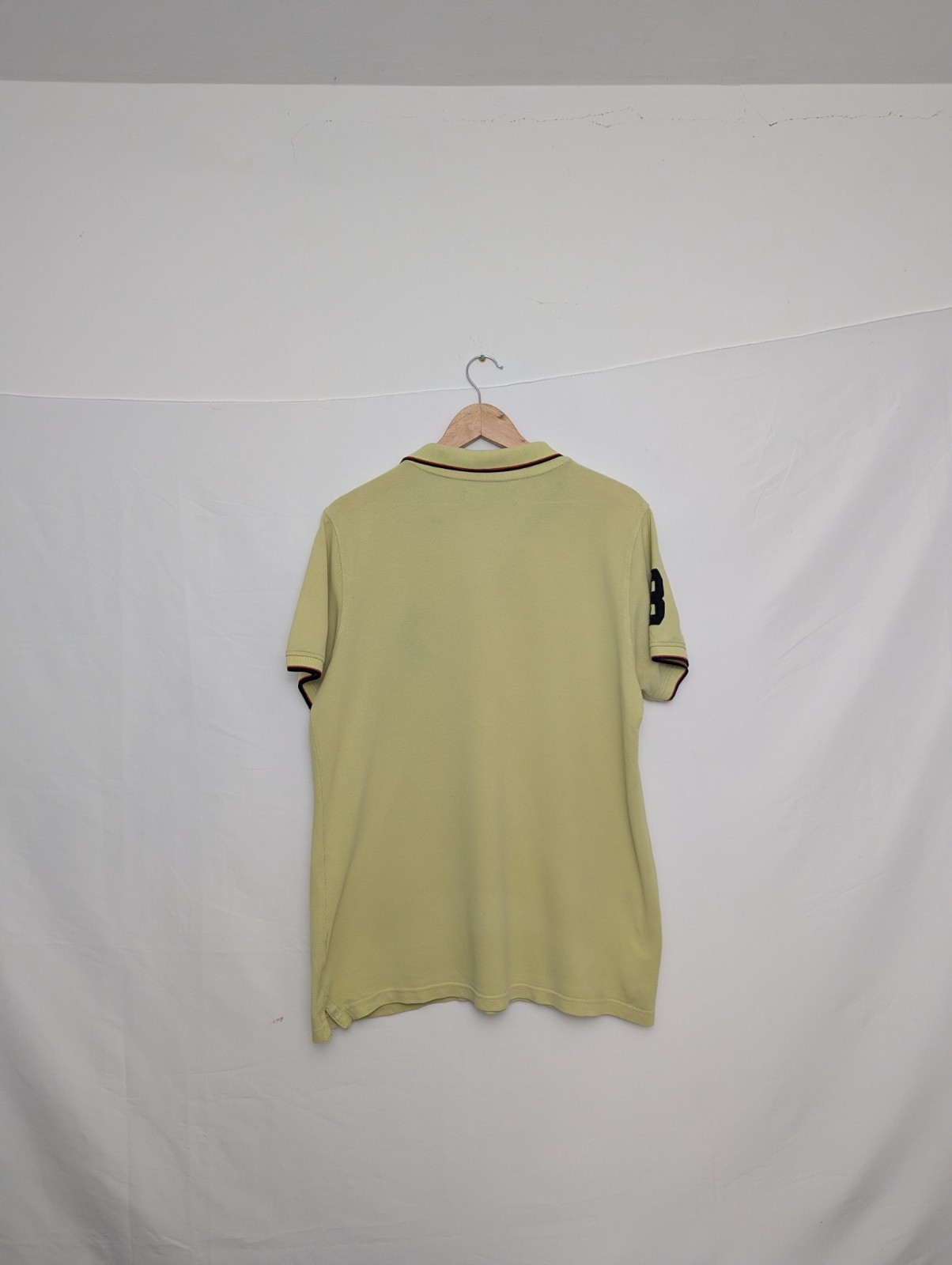 Men’s U.S. Polo Assn. short sleeve polo shirt in a muted yellow colourway. Features a classic polo collar with contrast tipping and an embroidered polo player graphic on the chest.