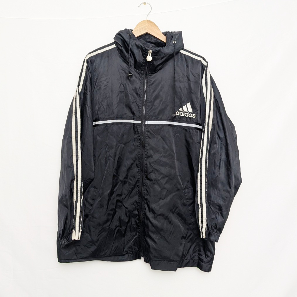 Vintage Adidas Hooded Windbreaker Jacket – Men’s XL – Black