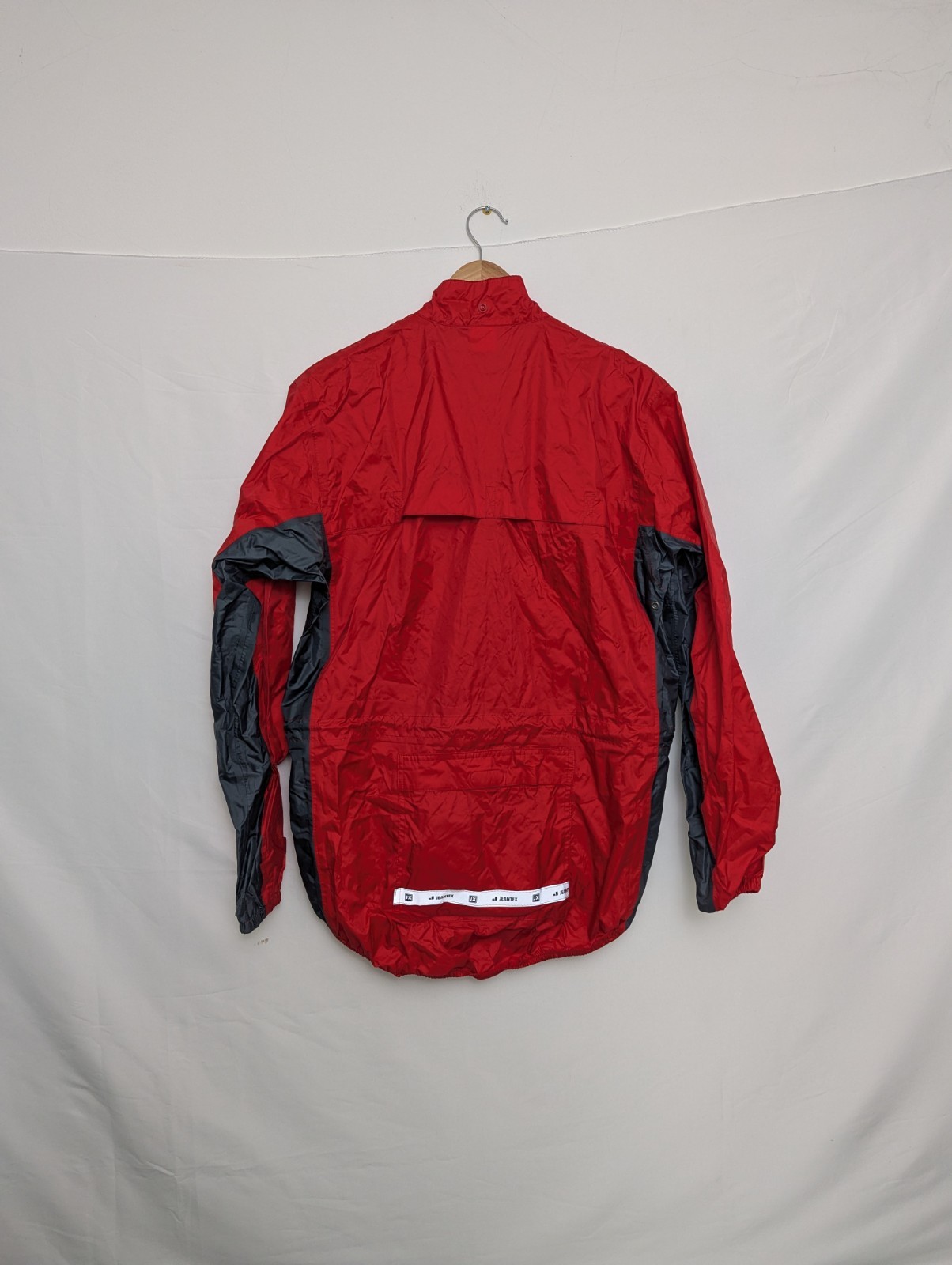 Retro lightweight windbreaker by Jeantex, featuring a classic long cycling tail, rear pouch pocket and two-tone nylon panel design.