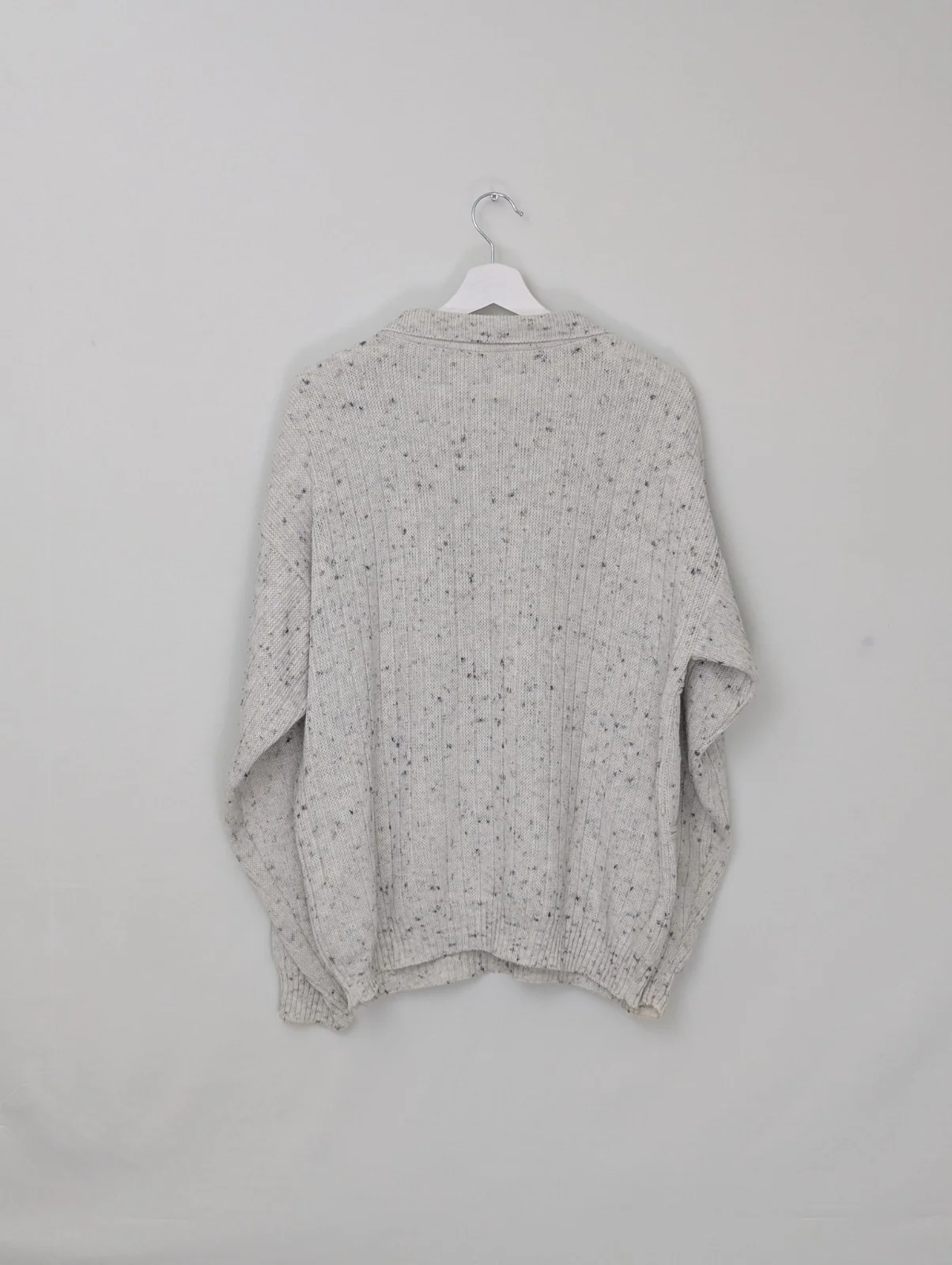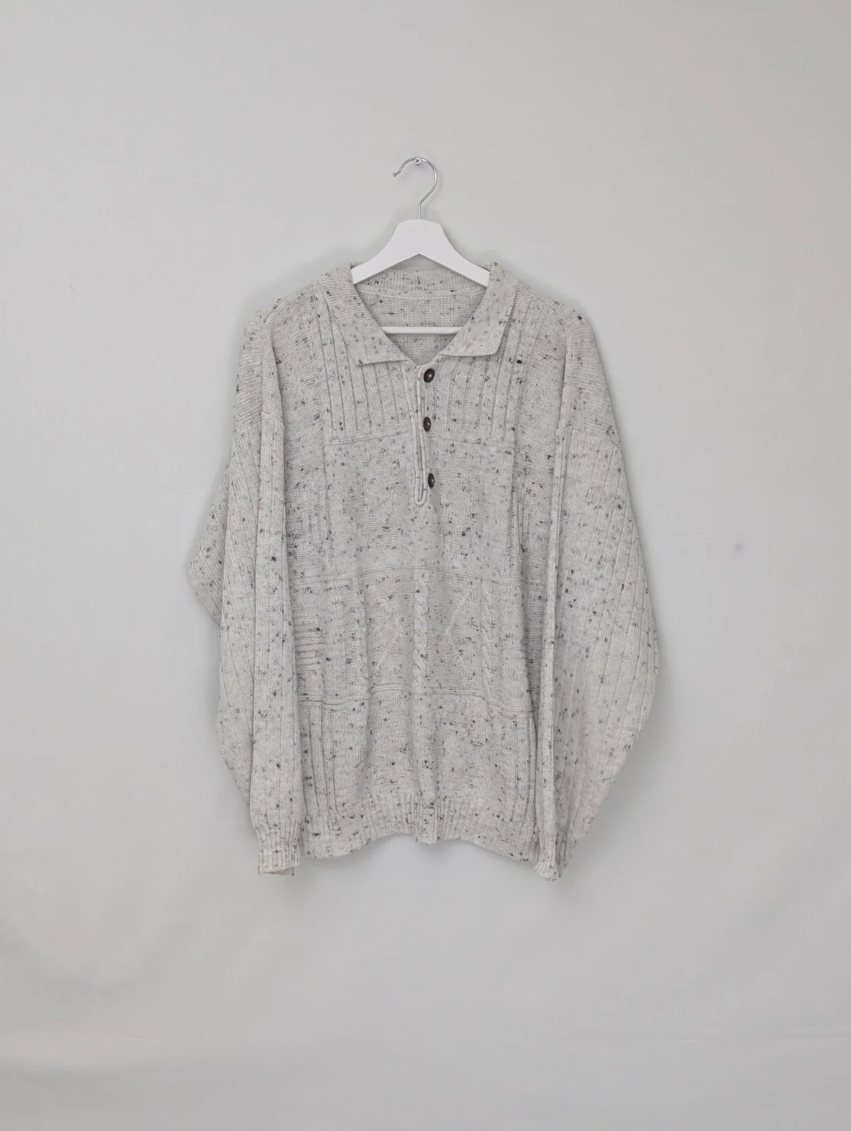 Vintage knit polo jumper in cream with flecked pattern and textured knit design.