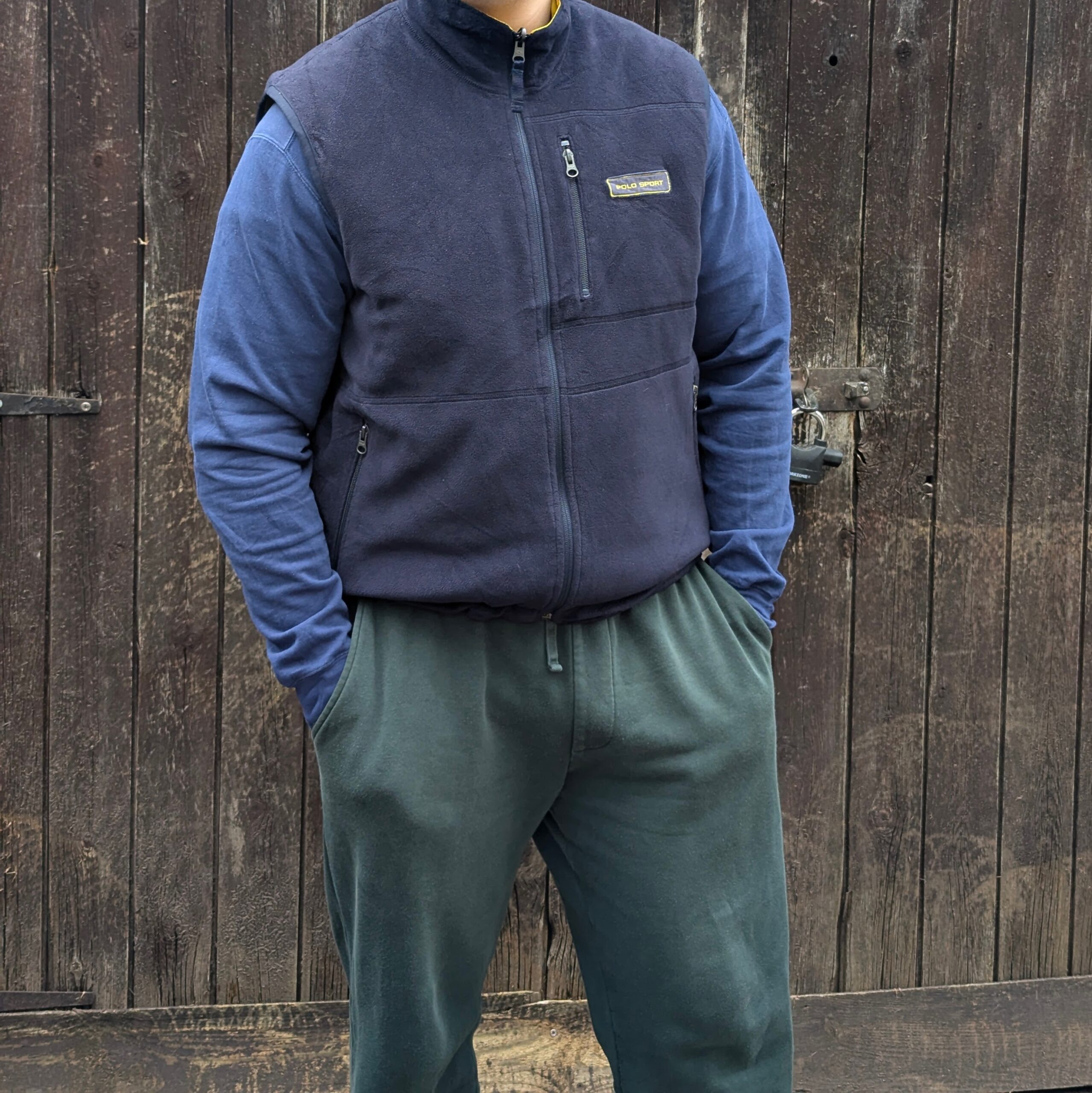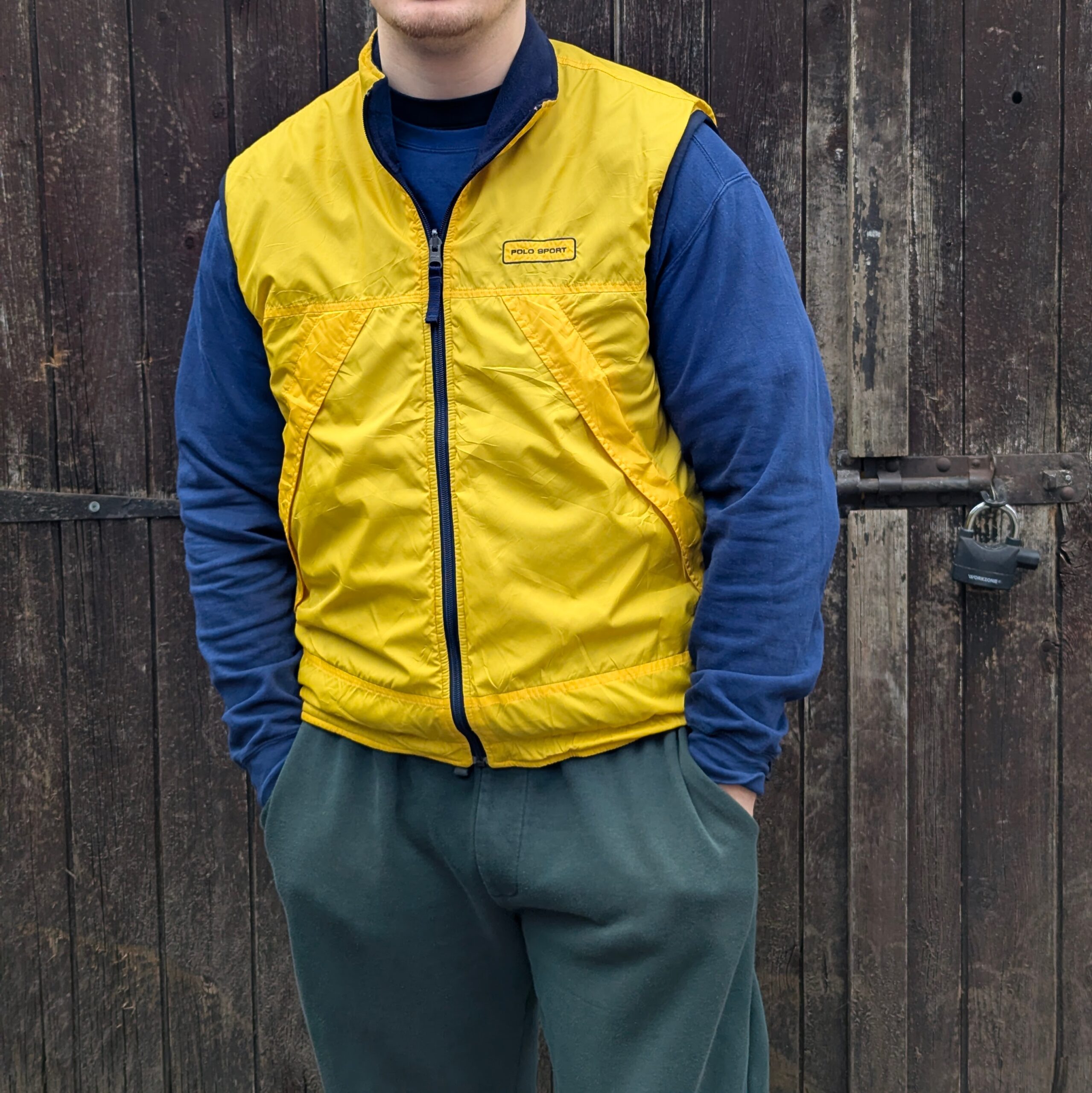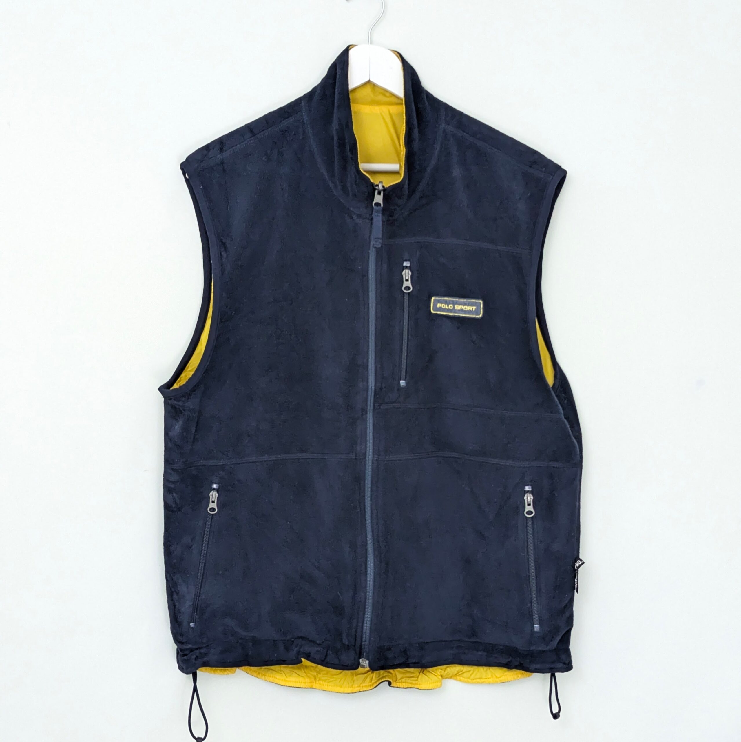 Vintage Polo Sport Ralph Lauren reversible gilet in a yellow and navy colourway.