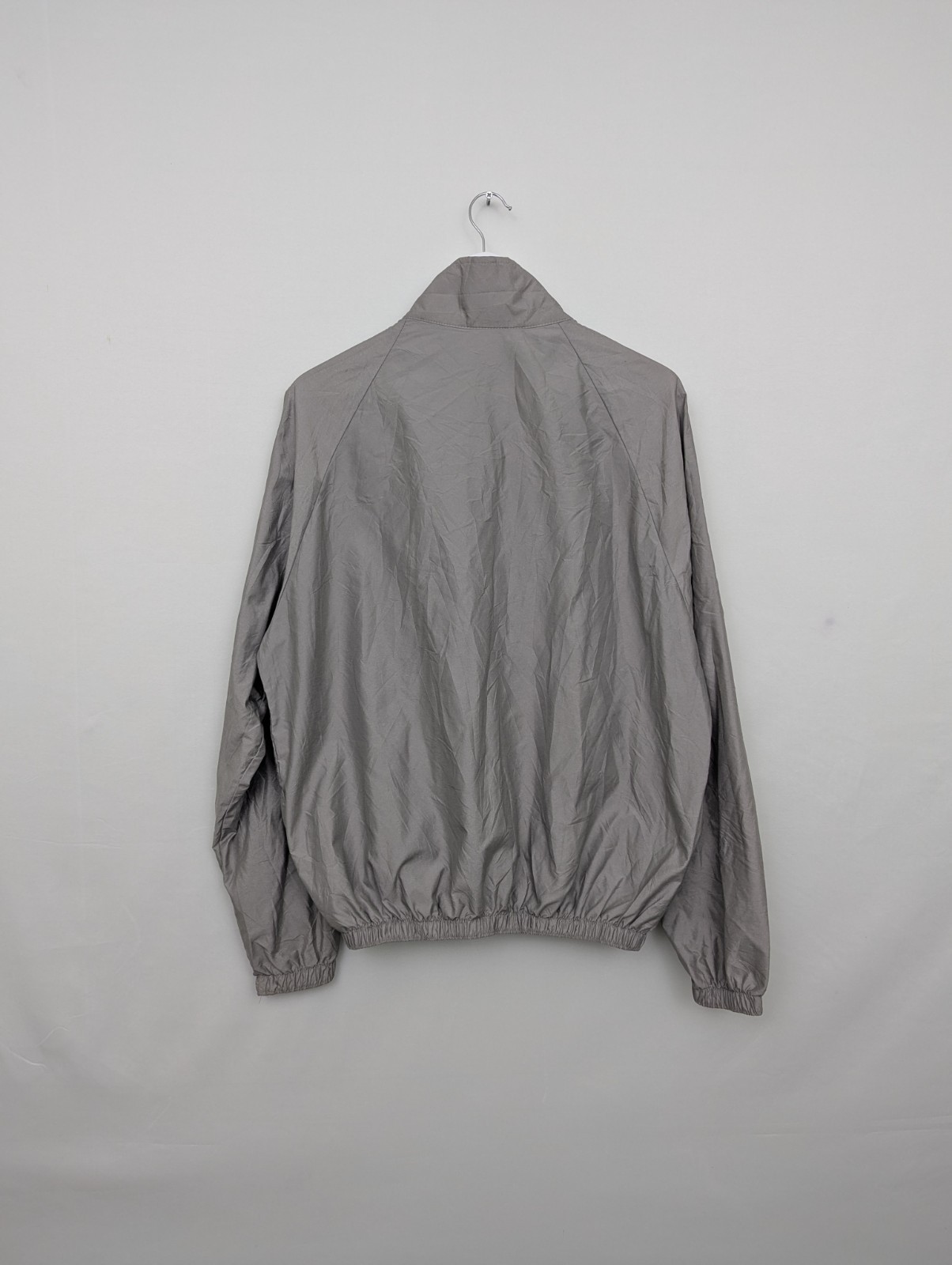 Lightweight 100% nylon construction with full zip front, elastic cuffs and hem, and zip pockets.
