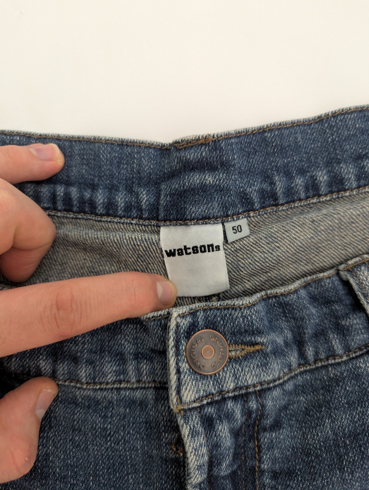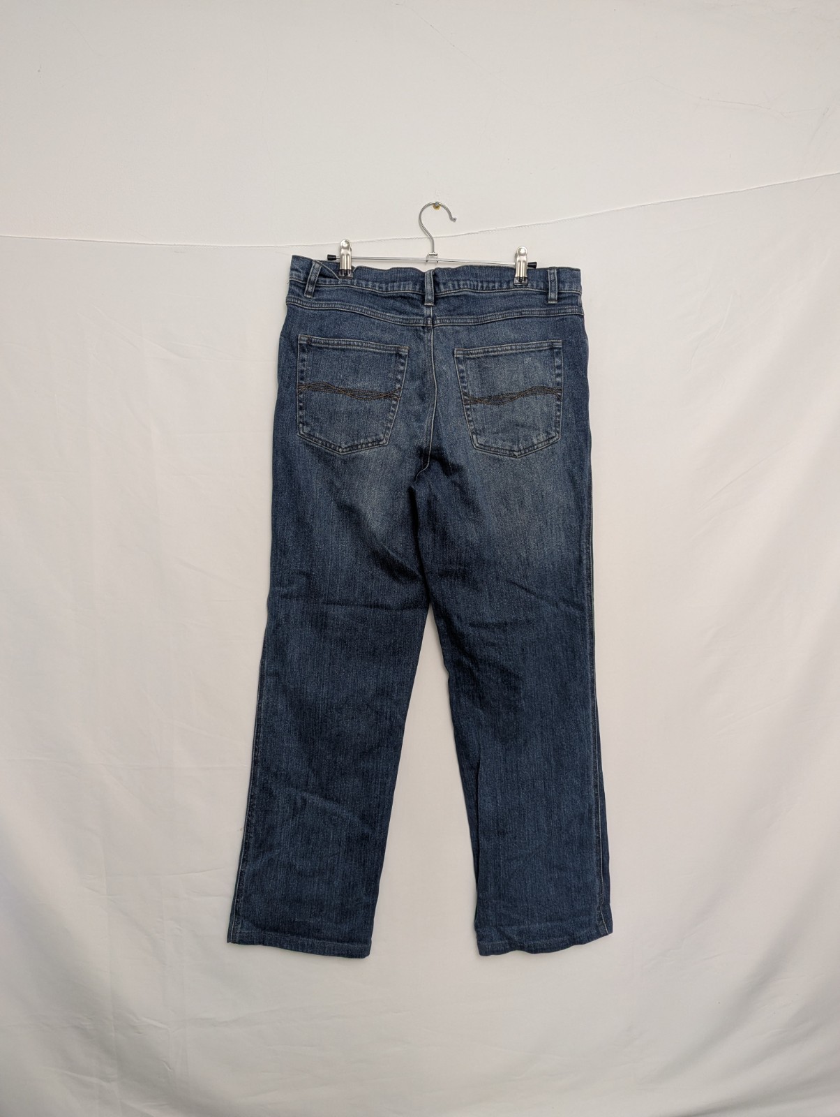 Good quality mid-wash jeans from Watsons, built in a classic straight leg cut. Solid and durable denim with natural fading to the front and back. Five-pocket layout, metal hardware and reinforced seams.
